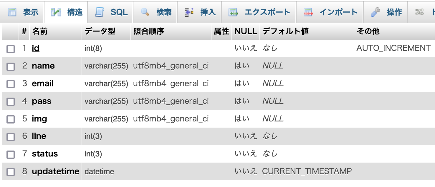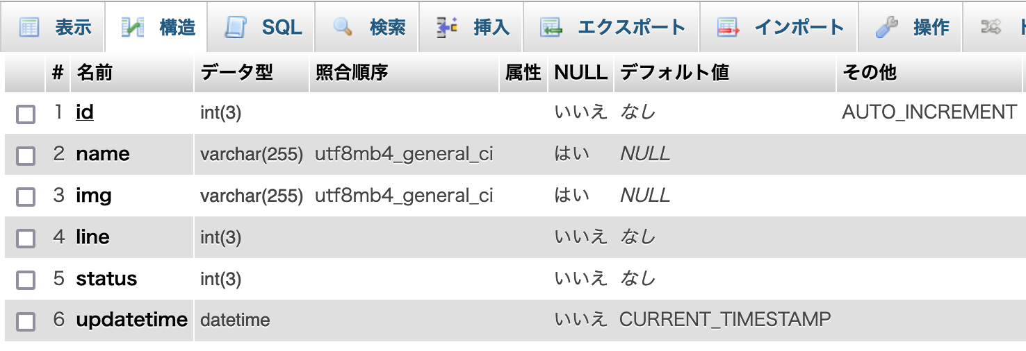 5日目の今日は、実際にデータベース(MySQL)内にテーブルを作成して、ダミーデータを入れ込んでみます。