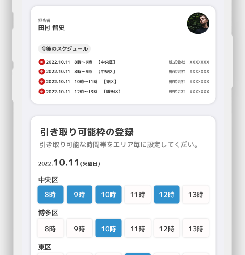 商品を持ち込みドライバー(営業担当者)も、当日の行動に合わせて、可能時間帯の設定可能。