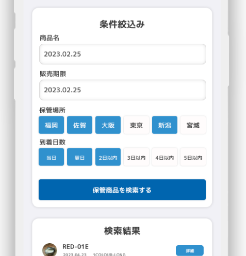 複数店舗間の商品移動に関して、到着日ベースで全国の在庫から抽出可能
